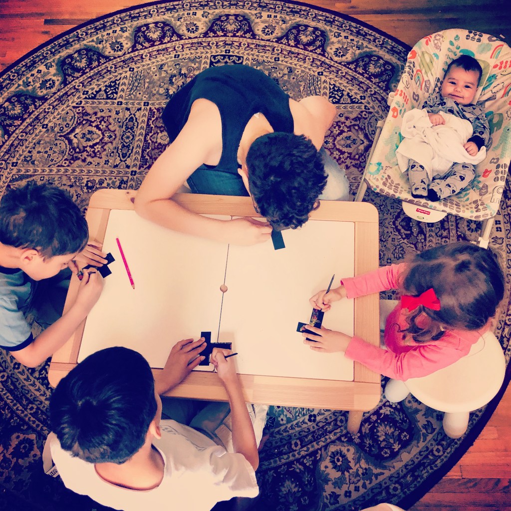 And sometimes, especially in 2020, it looks like gathering ‘round a table in the living room, and working on crafts (in this case, scratch art crosses) while worshipping via a livestream playing on the tv.