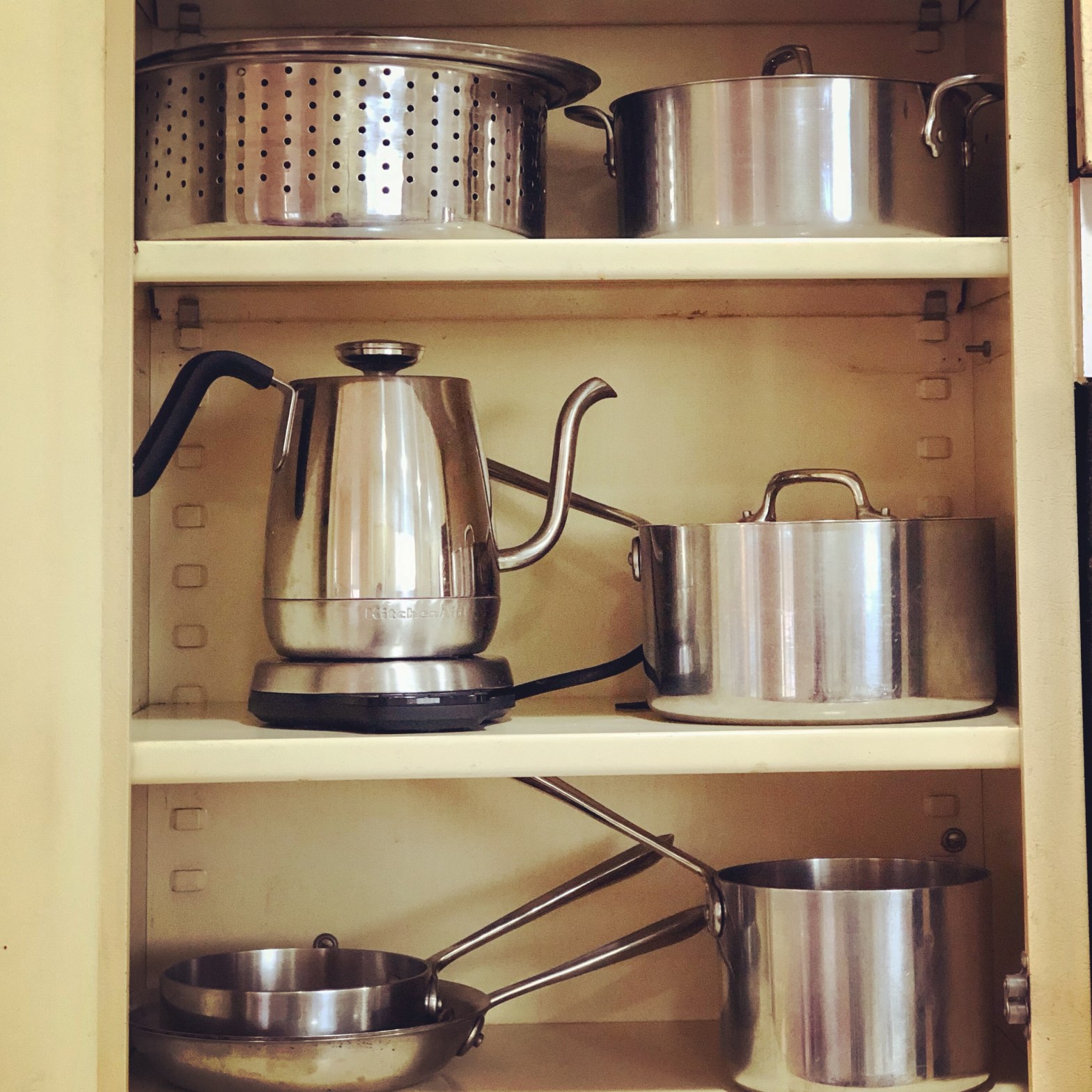 This is probably one of the hardest working cabinets in our home. Those pots get used multiple times a day—today they made oatmeal for breakfast, and homemade Mac & cheese for lunch. They’ll boil water for afternoon tea, and get called into work again for rice, beans and tacos for dinner tonight. Those pots haveContinue reading “Some thoughts about pots… (and pans)”